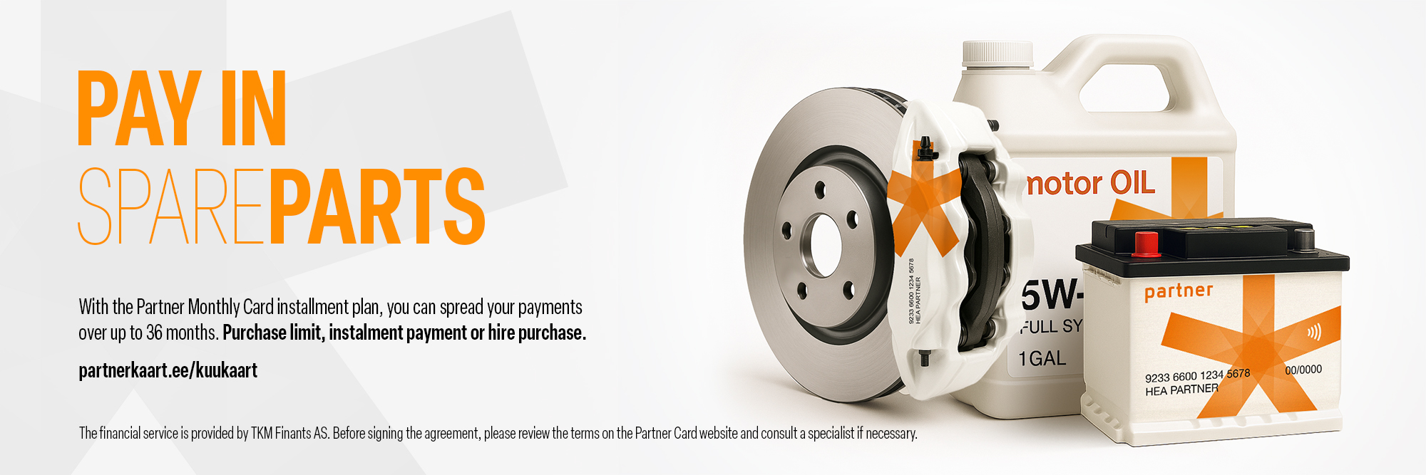 **Partner Monthly Card financial services are provided by TKM Finants AS, a subsidiary of TKM Group (registry code 16015720, address Kaubamaja 1, Tallinn 10143), which holds a credit provider license issued by the Financial Supervision Authority (license no. 4.1-1/161). Please review the terms and conditions and consult our specialists if needed.